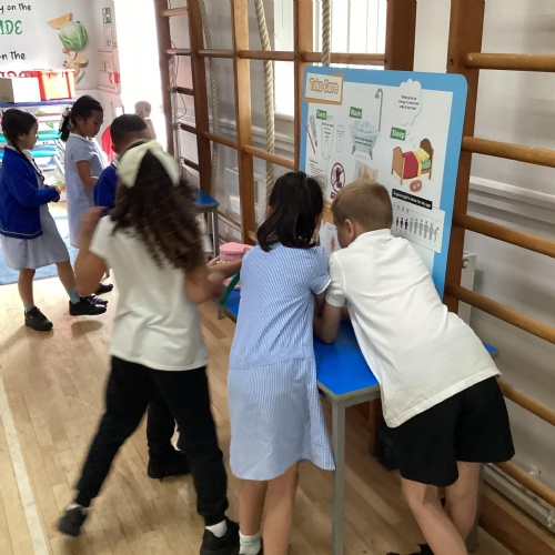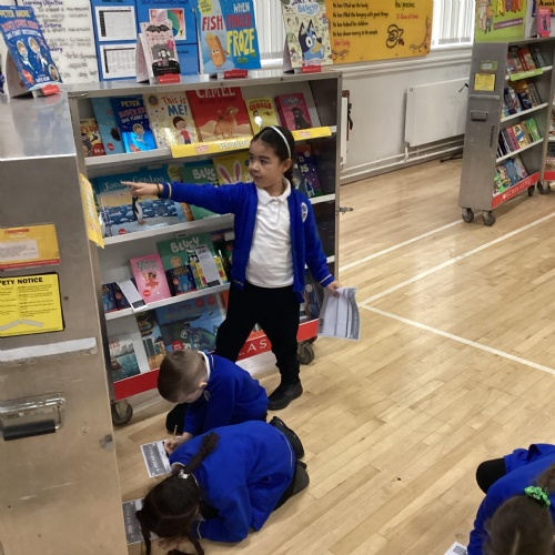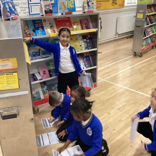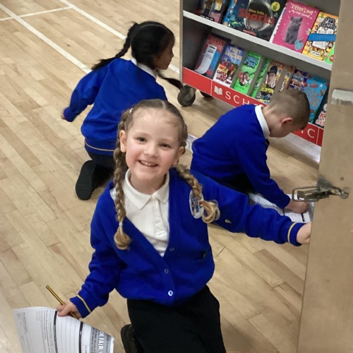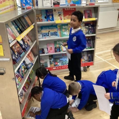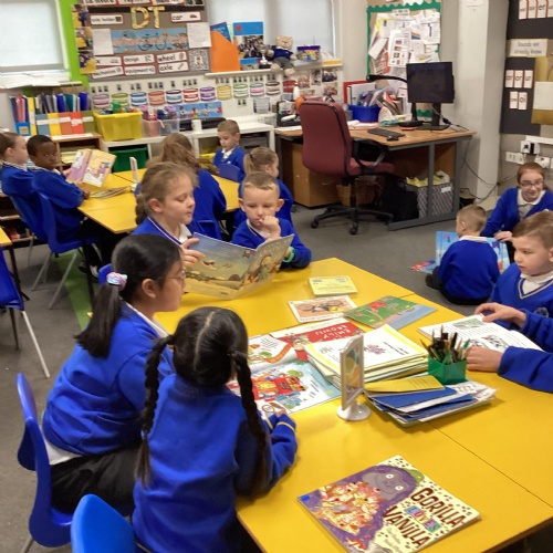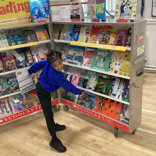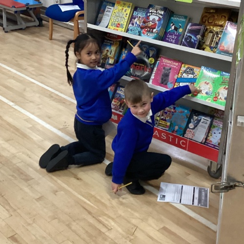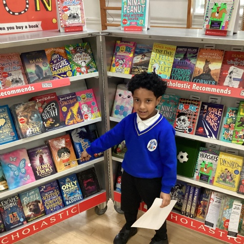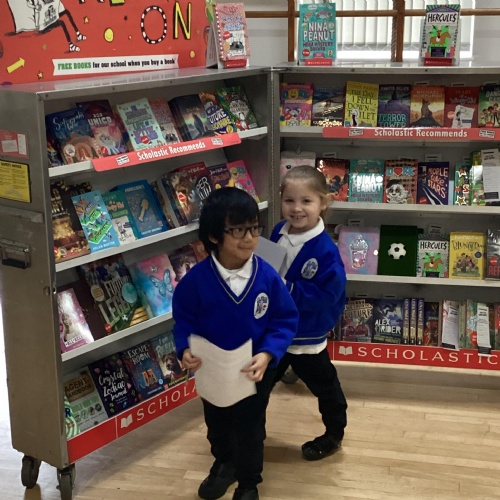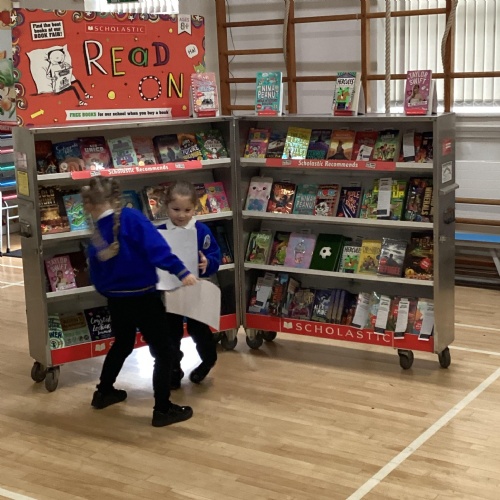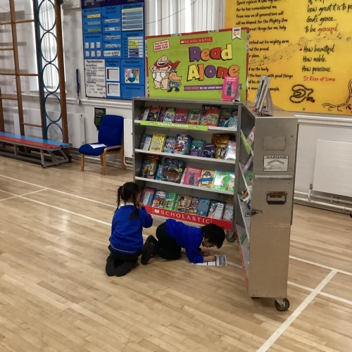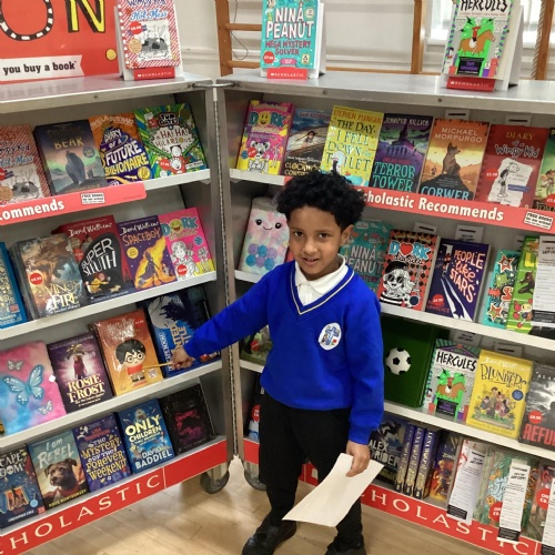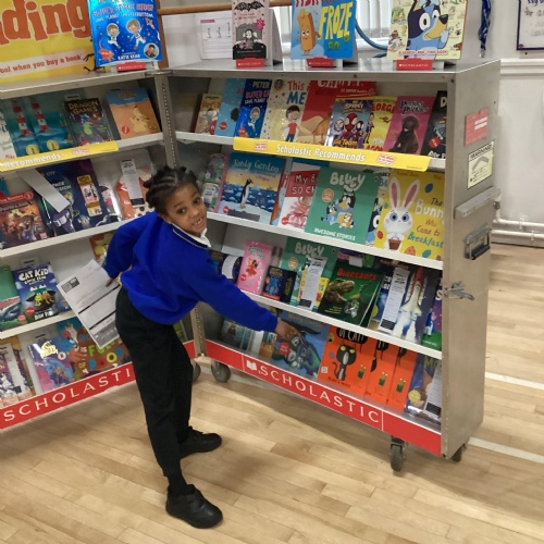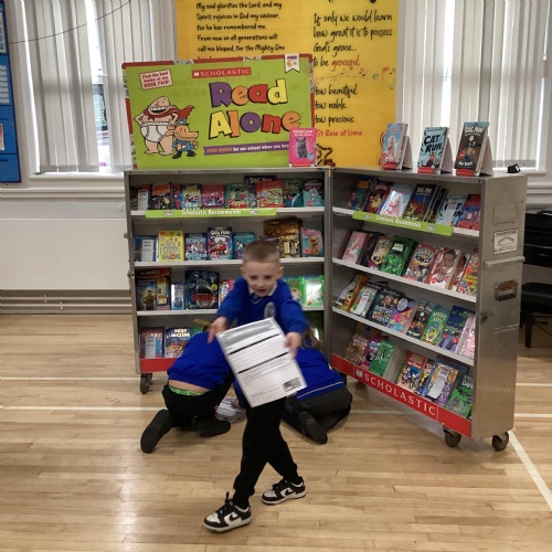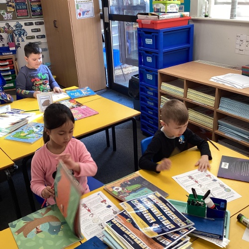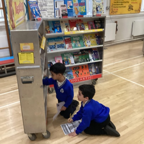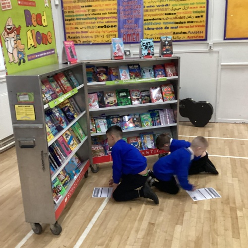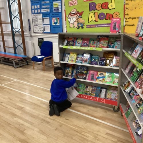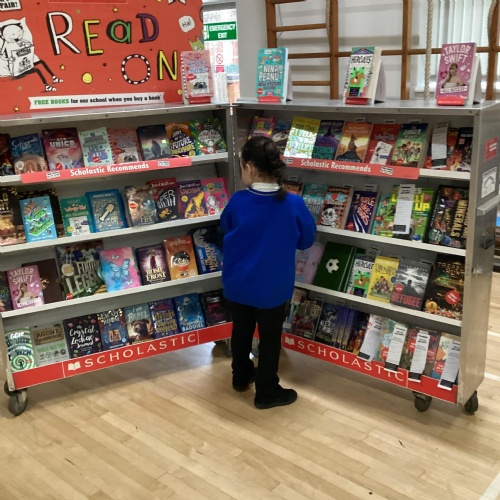 Year 1 choosing and browsing books at Our Book Fair