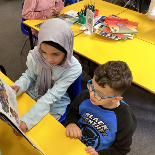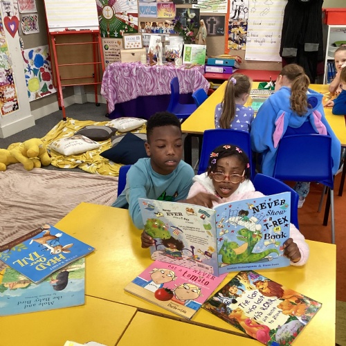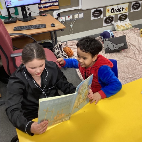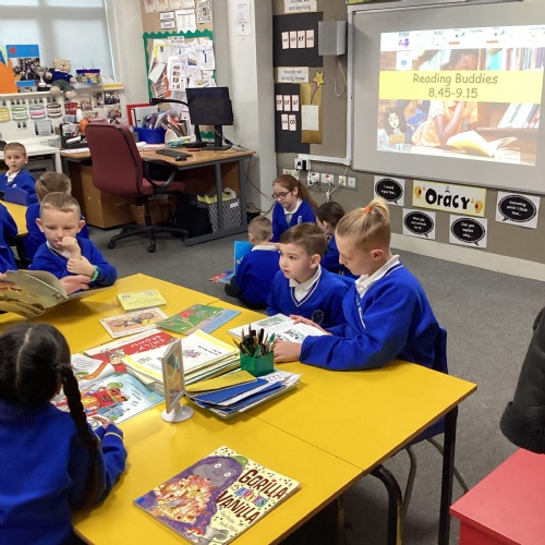 Reading Buddies with Year 5- Enjoying books and stories together
