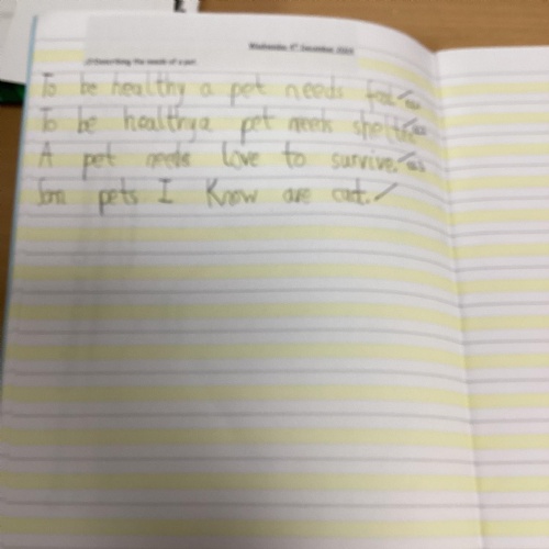 Science Work- Identifying and explainign the needs of Pets