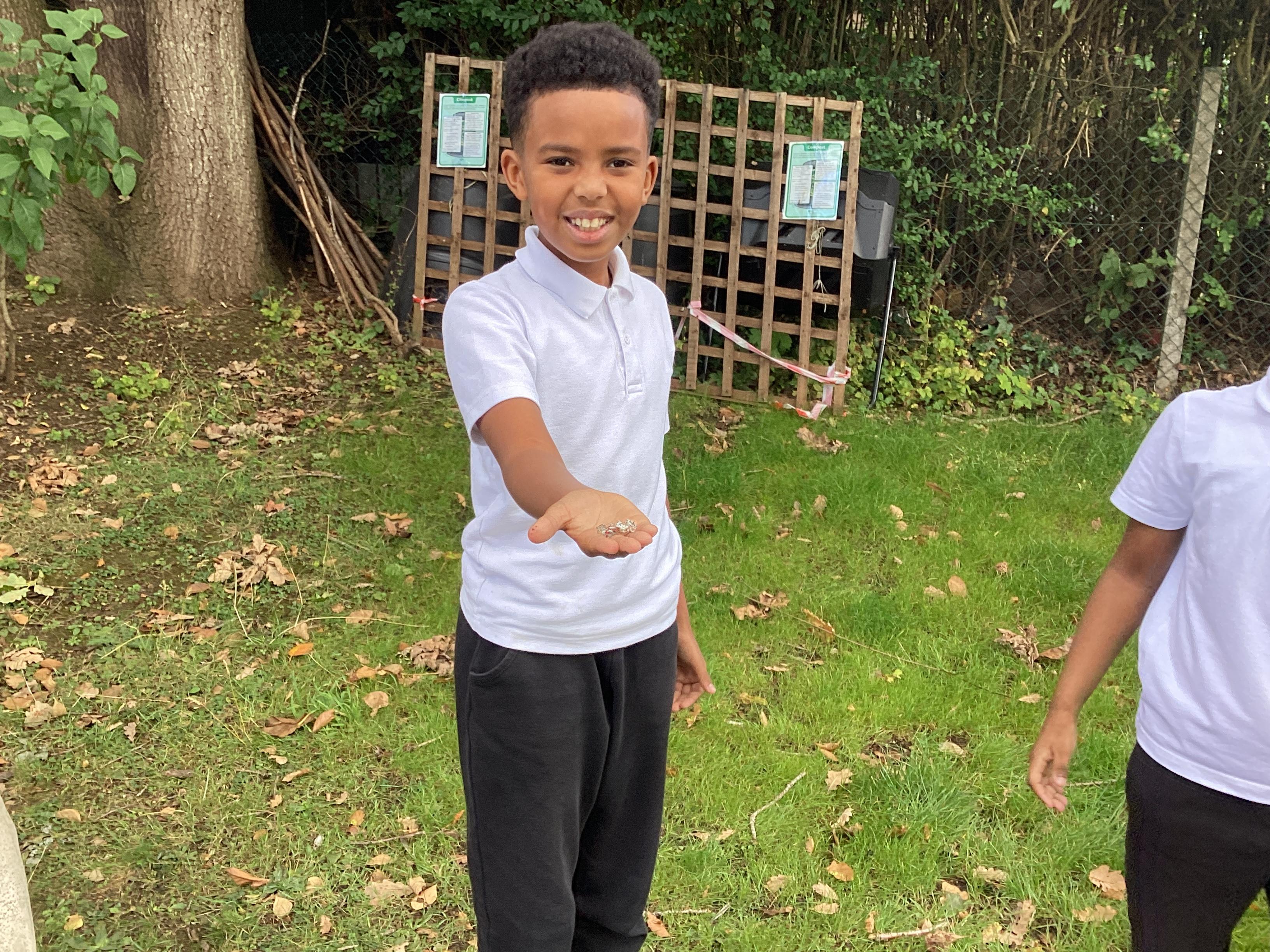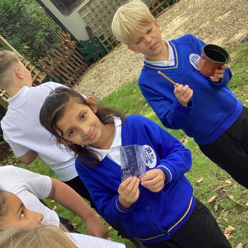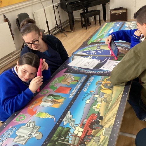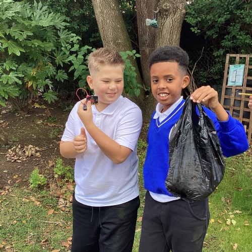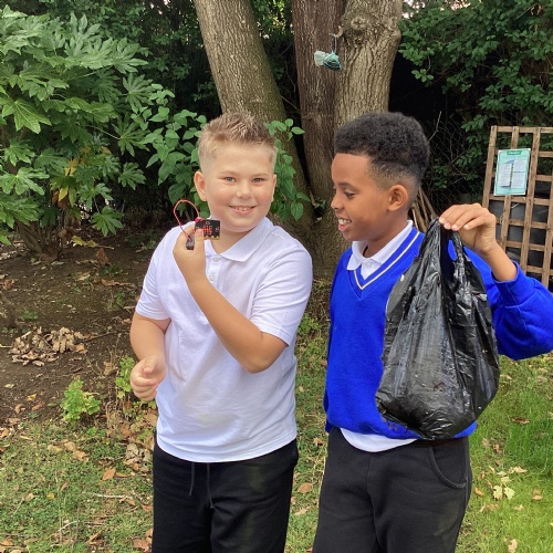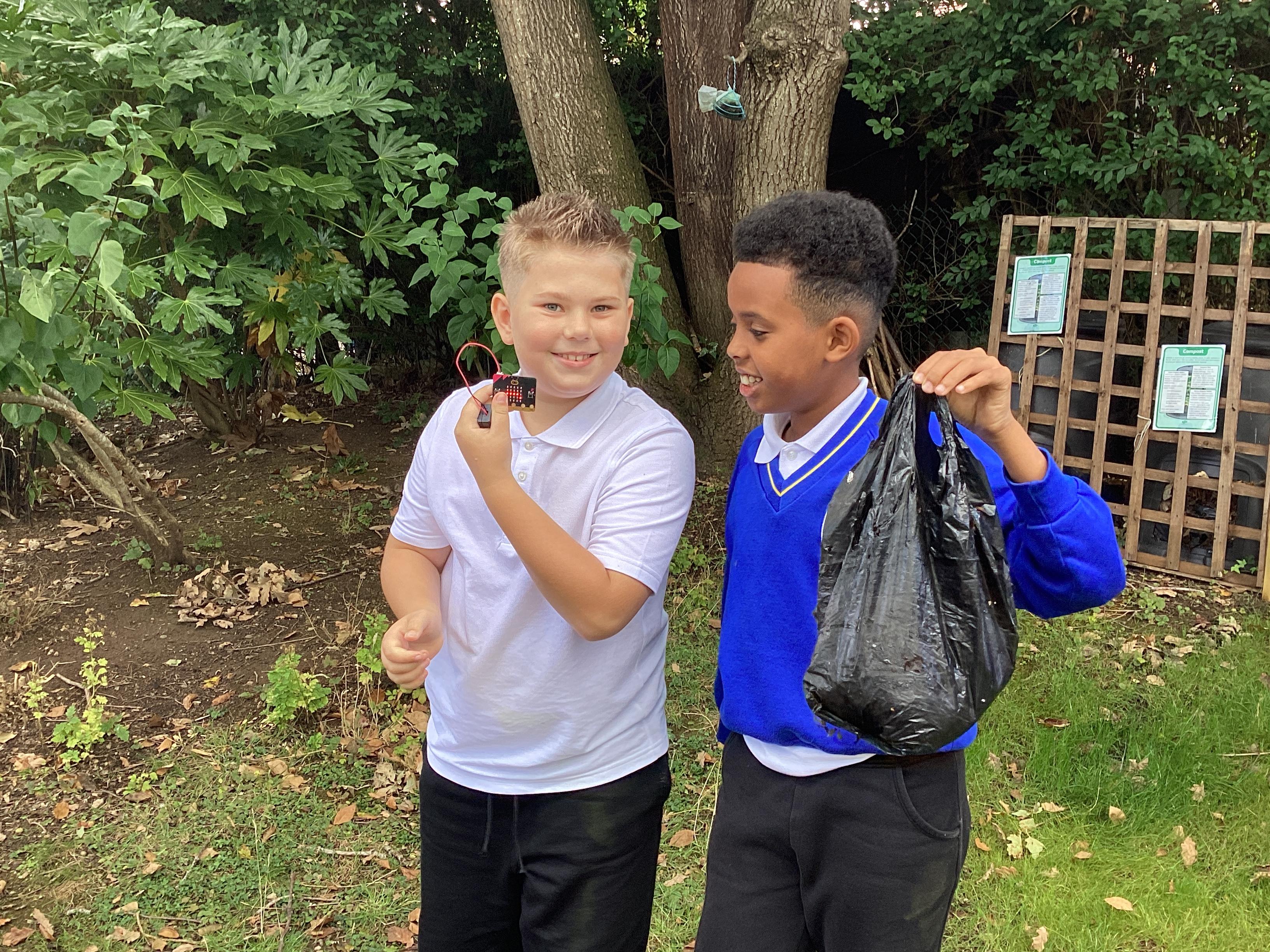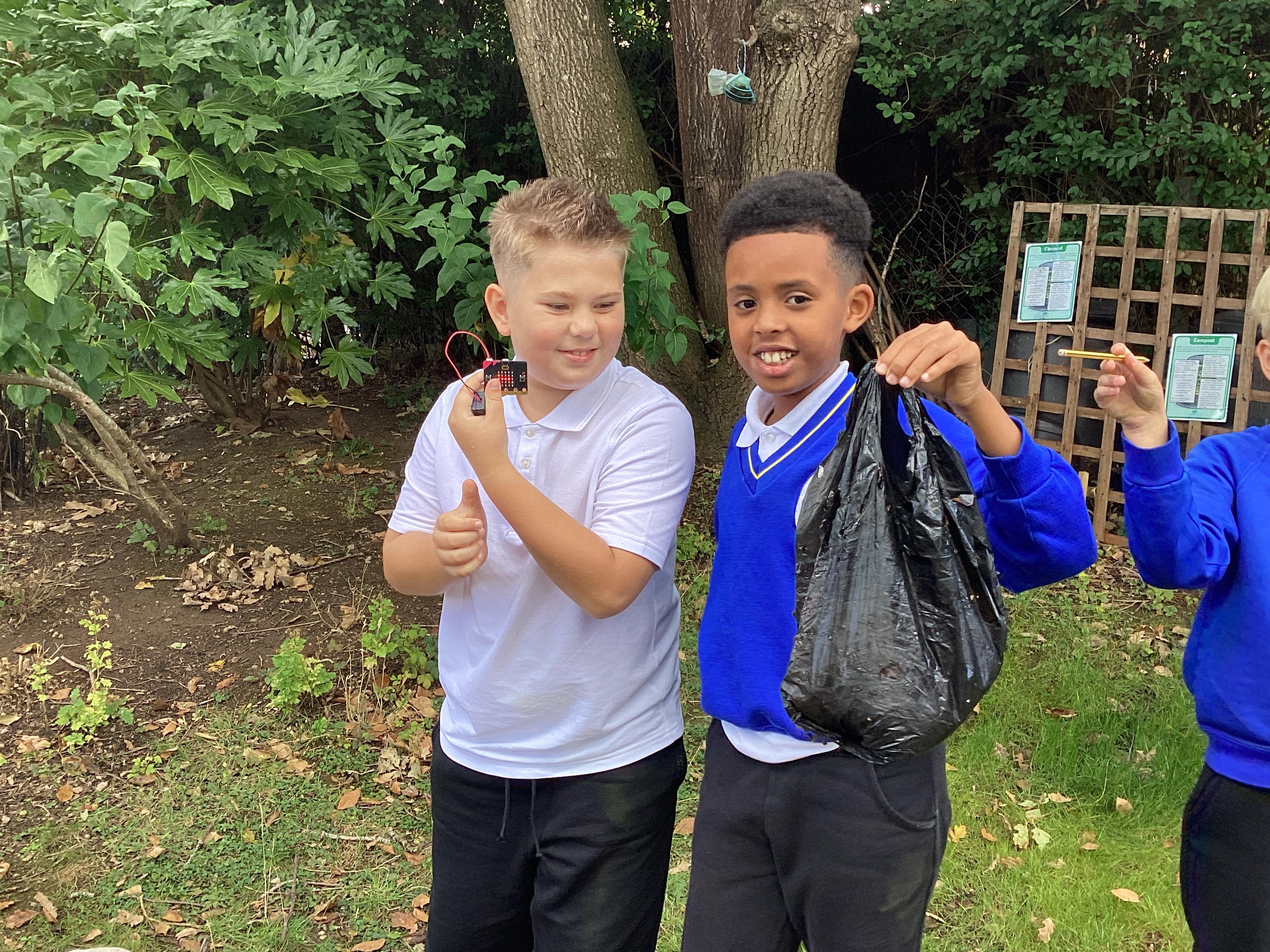 Once the children had written their code to create their micro:bit devices, they used them to collect data about the litter we found around school grounds. They collect information about which litter could be recycled and which couldn't.