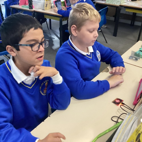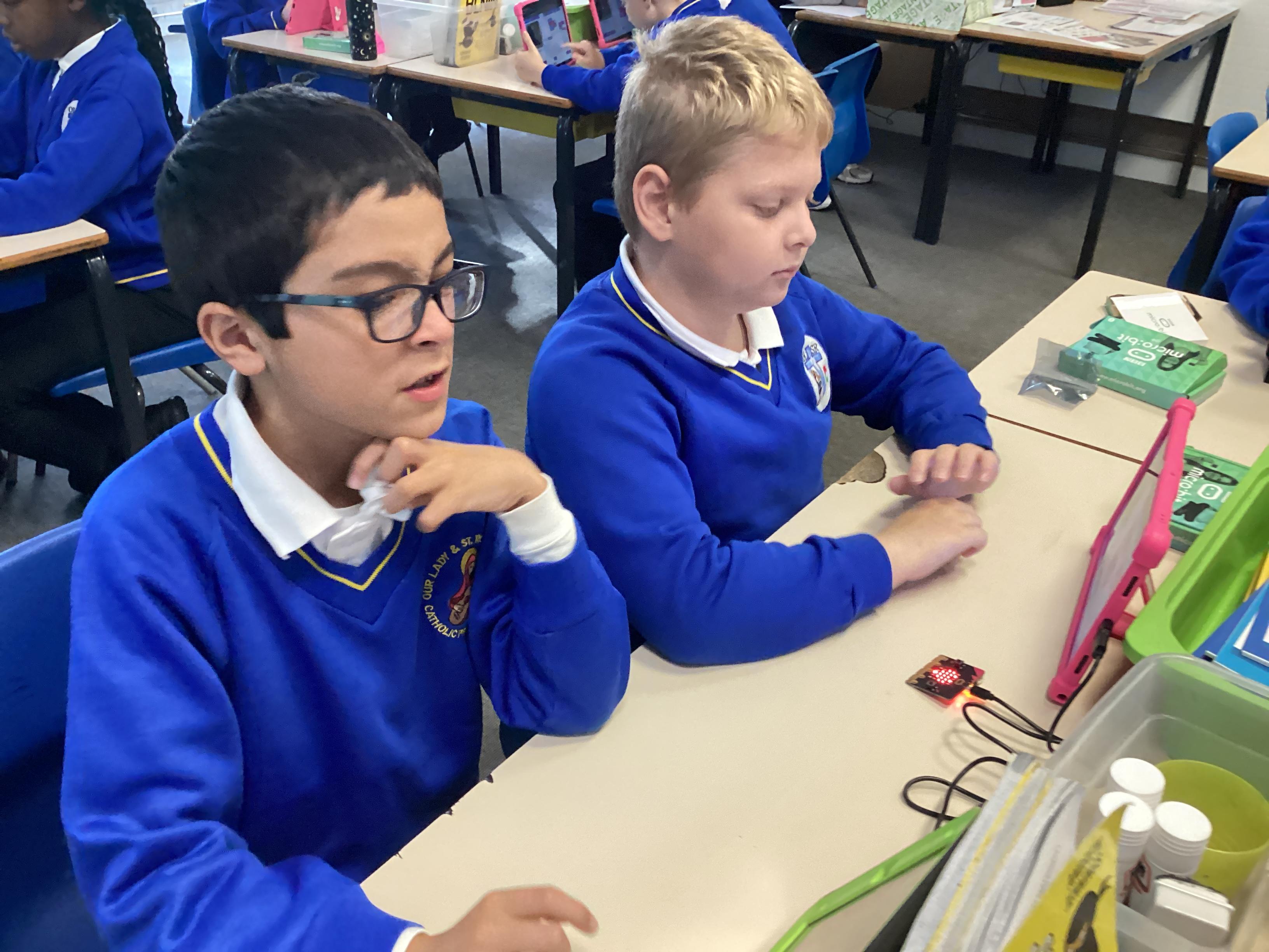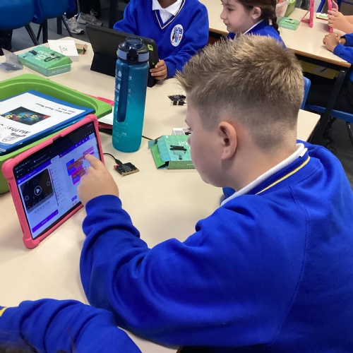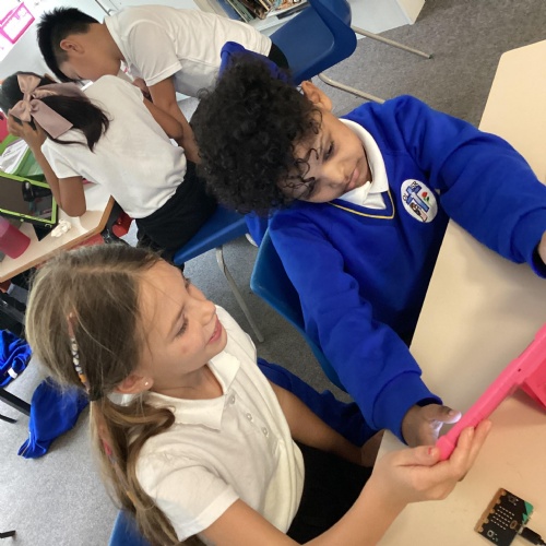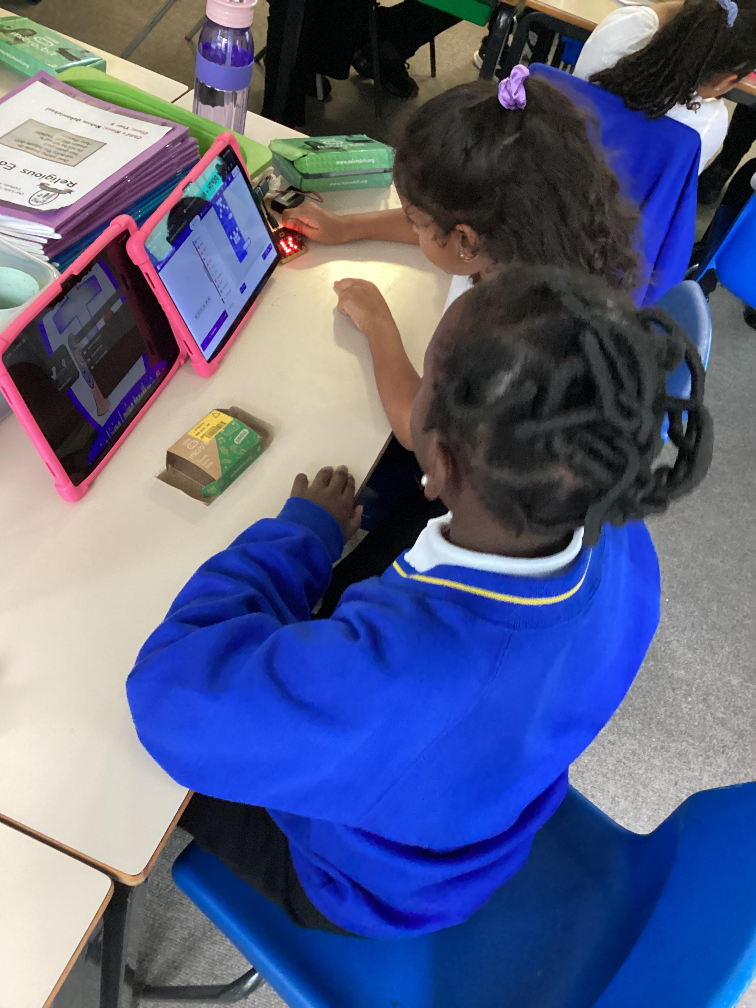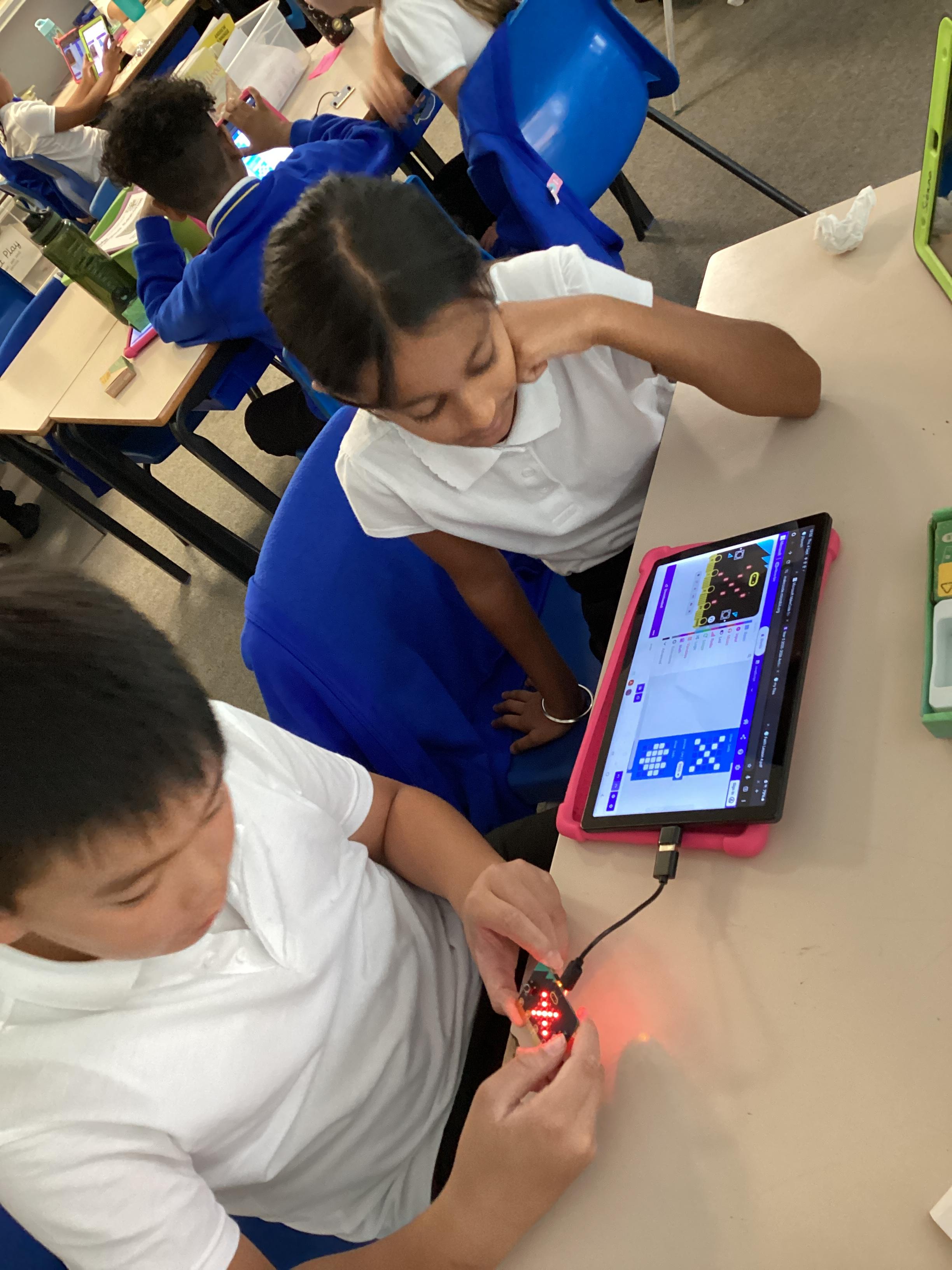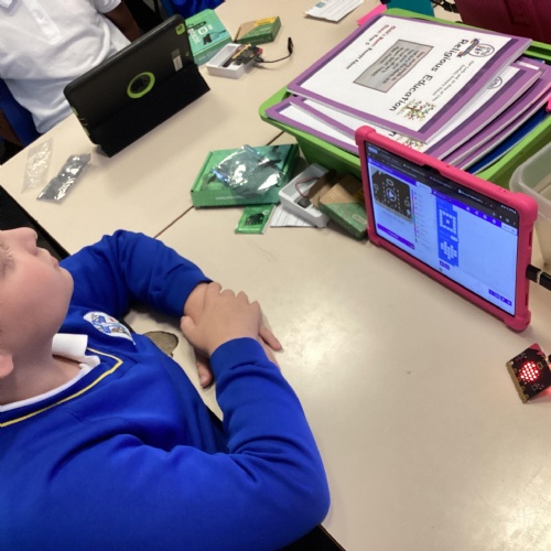 Year 5 really impressed Mrs Edgington with the coding skills! They worked well on putting together the "blocks" to write coded with told their micro:bits to show images, text, and then eventually worked to write code with variables where they created a device to count and collect data!
