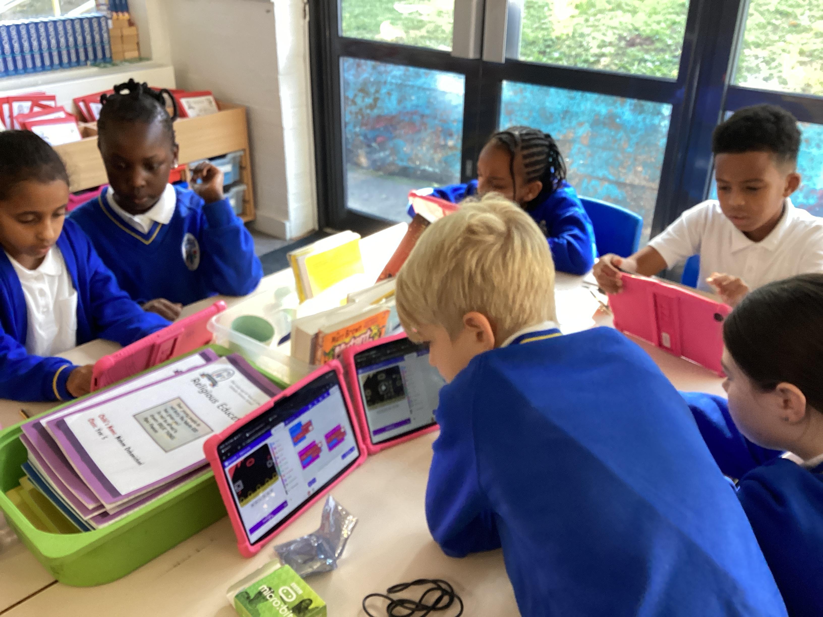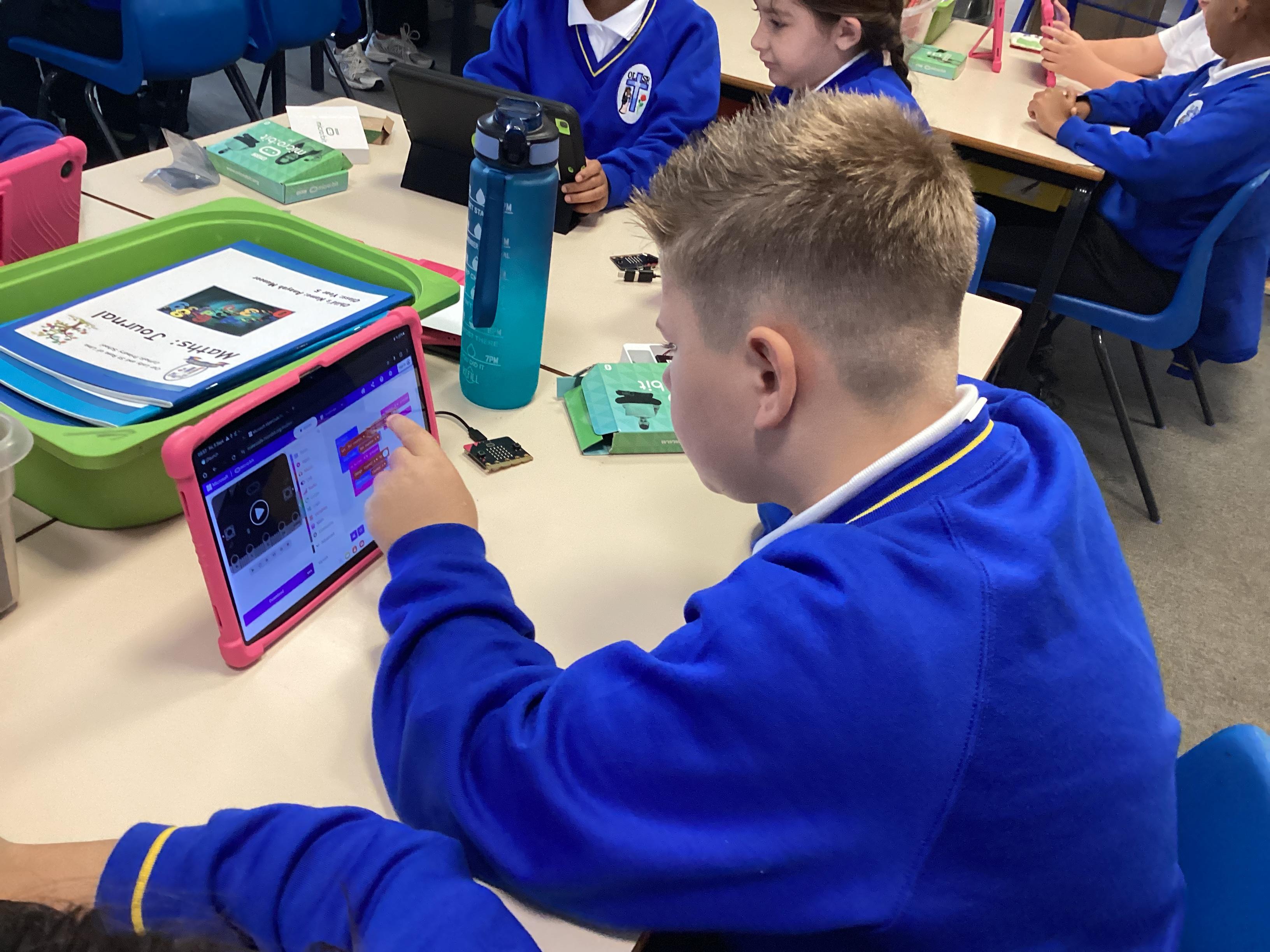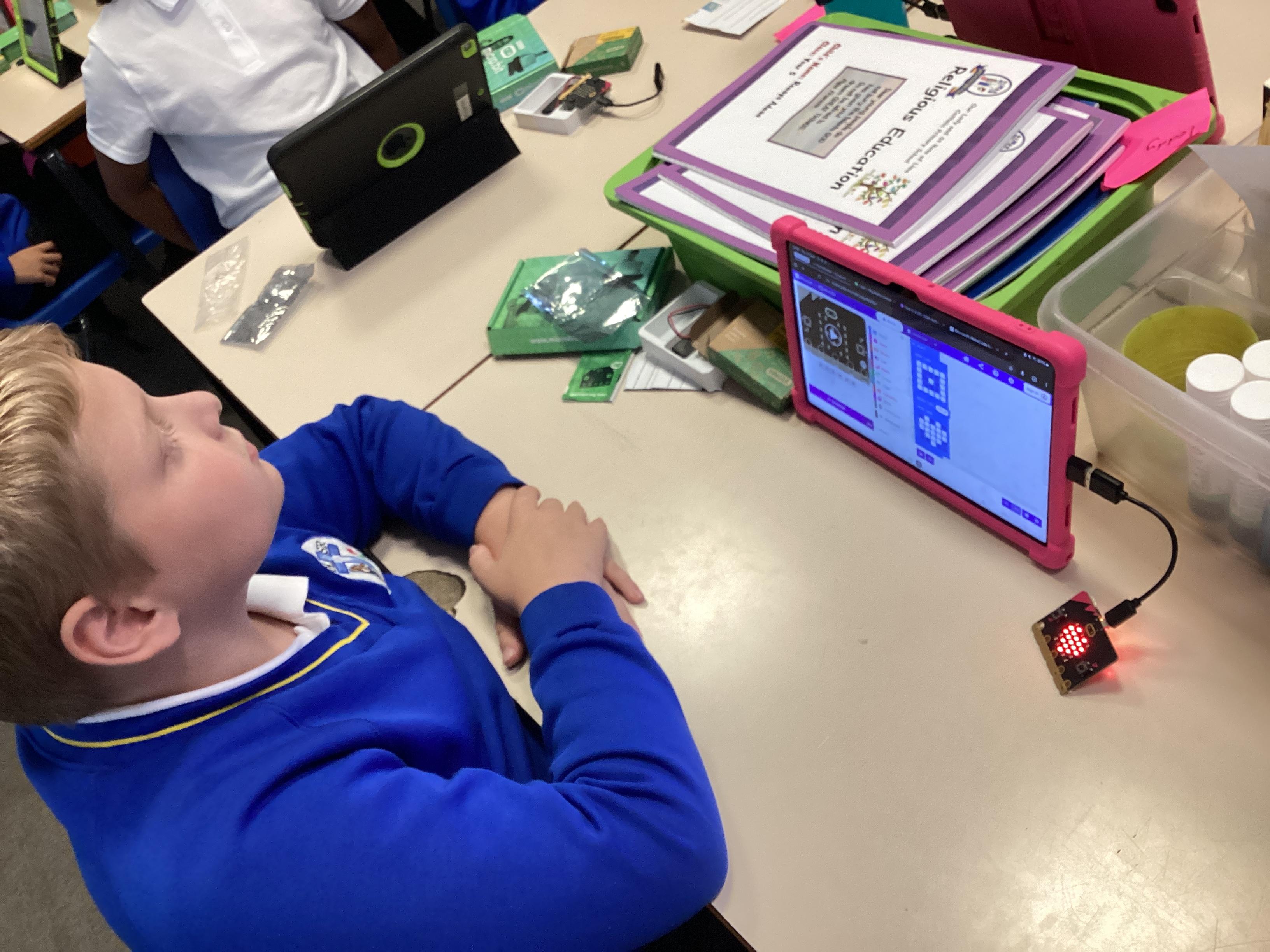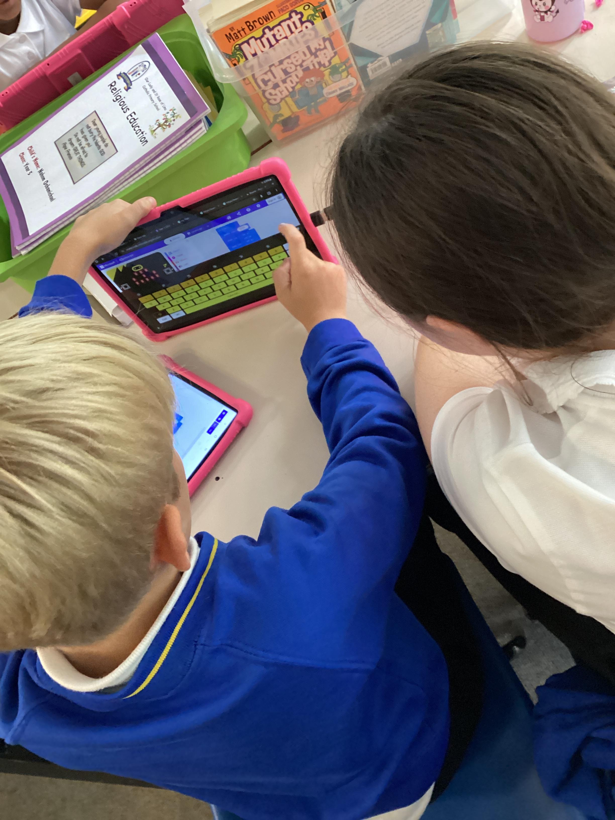 Year 5 really impressed Mrs Edgington with the coding skills! They worked well on putting together the "blocks" to write coded with told their micro:bits to show images, text, and then eventually worked to write code with variables where they created a device to count and collect data!