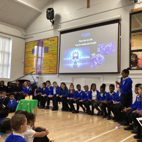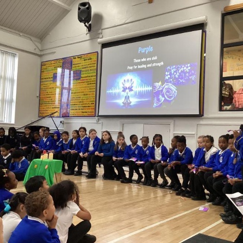 The lighthouse group led a prayer and reflection assembly on the new prayer garden and Mental Health Week. They shared how children and staff can purchase the 3D printer made flowers for our prayer garden based on the resemblance of the colours to remember or prayer for someone and a specific theme.