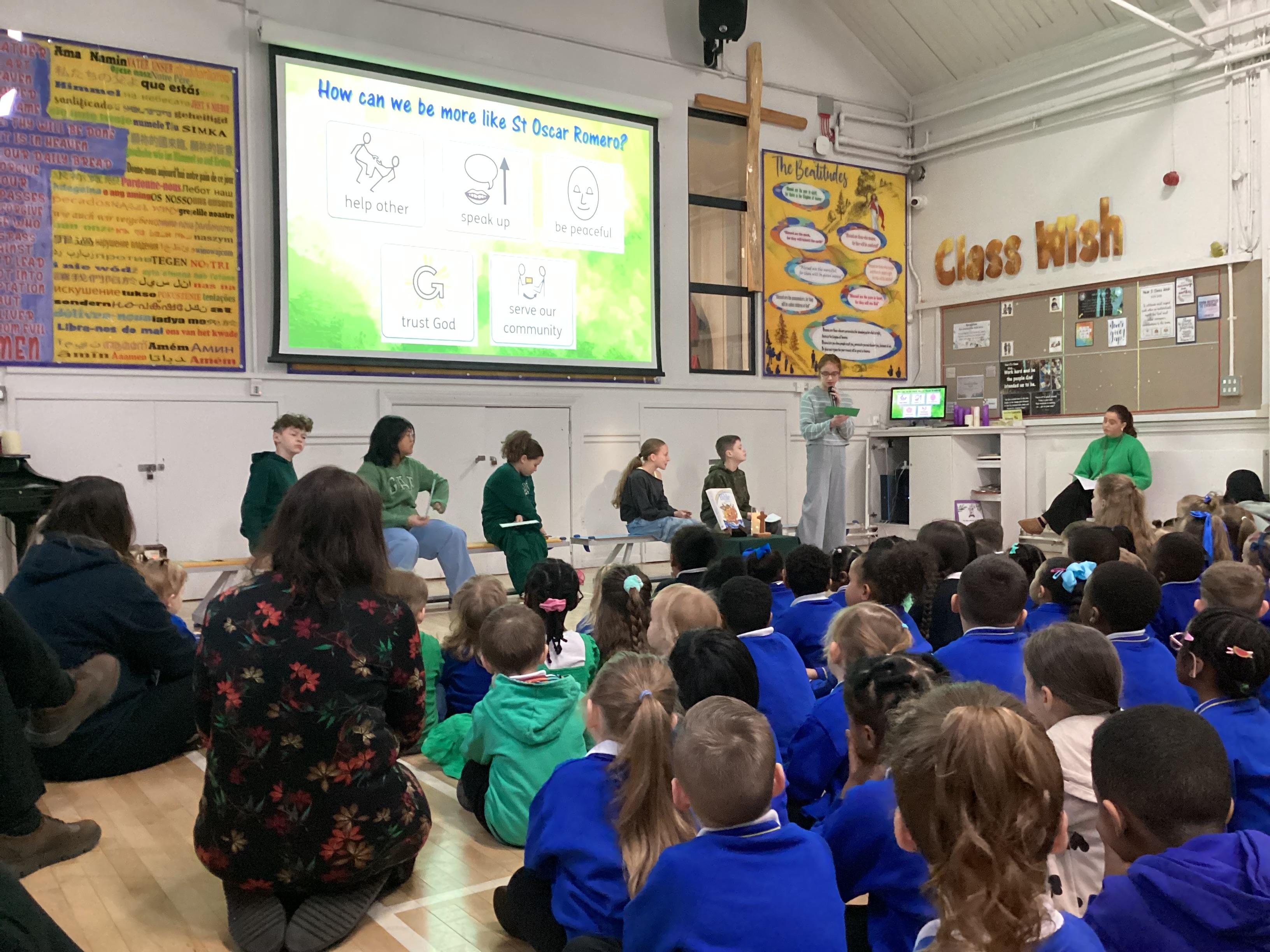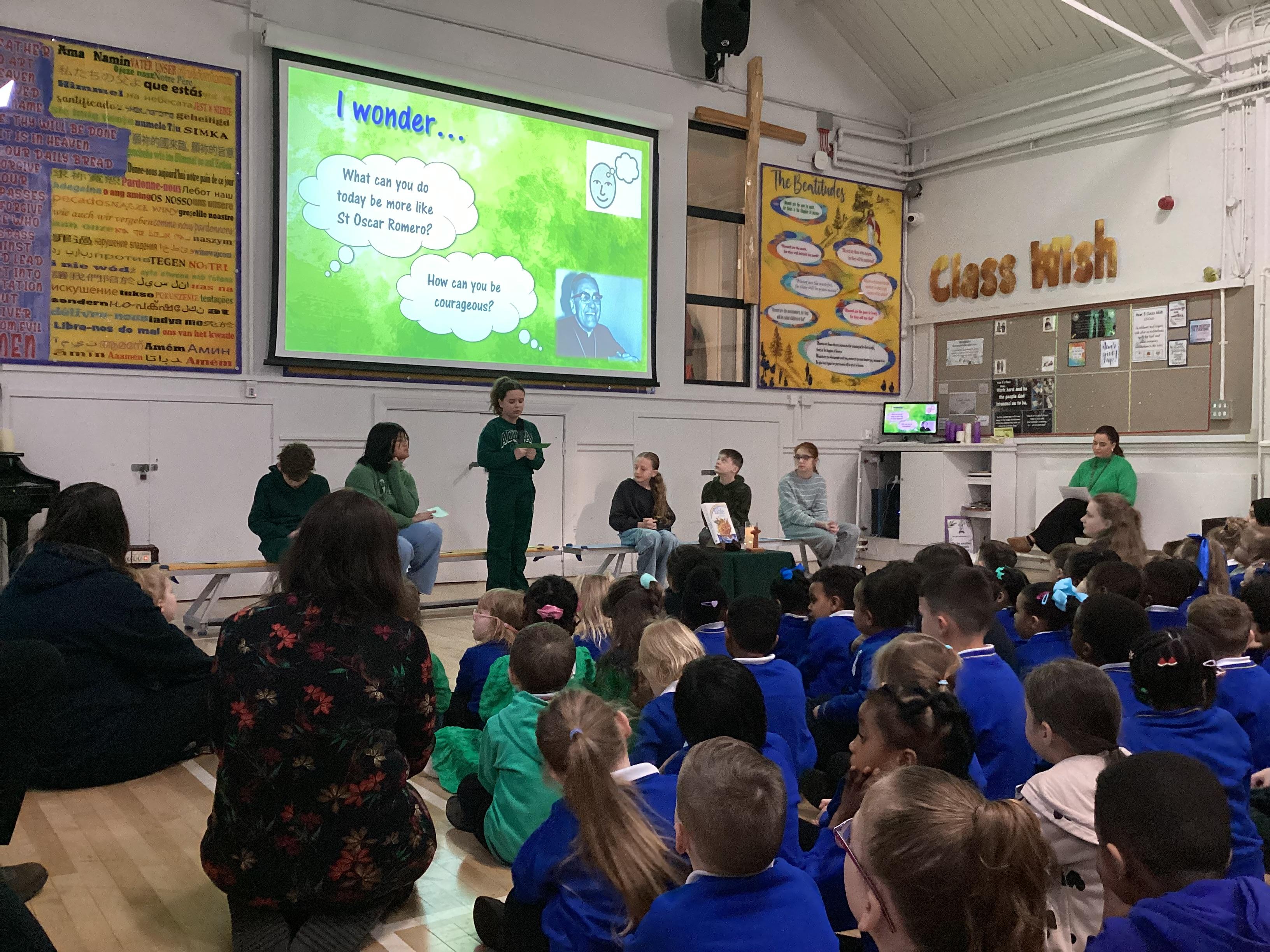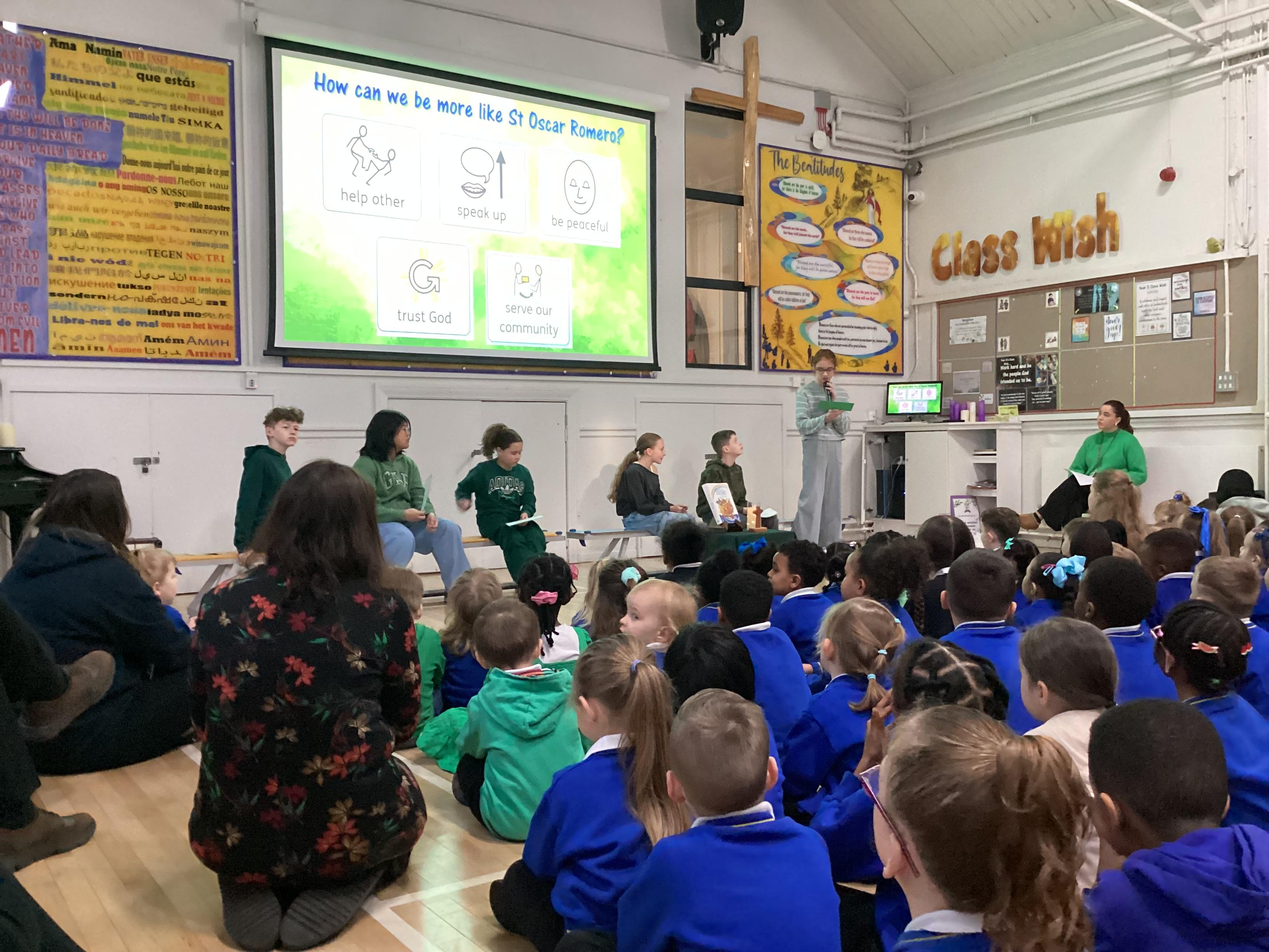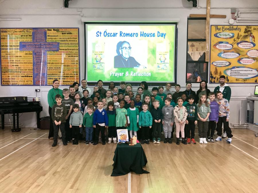 On Wednesday 5th February, the children in our team celebrated our house saint.  The children were invited to come in wearing green, to support St Oscar Romero and the children from Years 5 and 6 shared a beautiful assembly with the whole school.