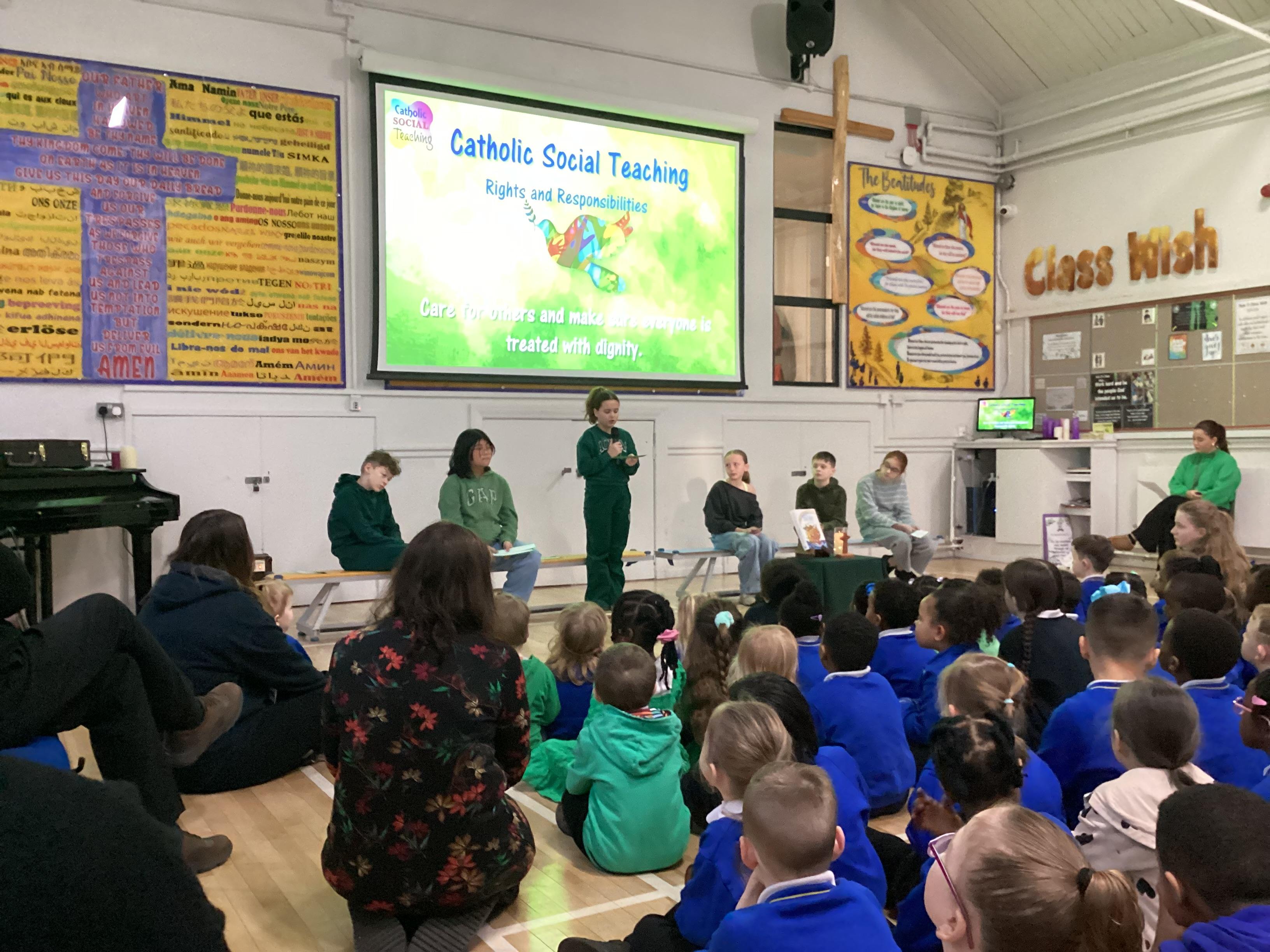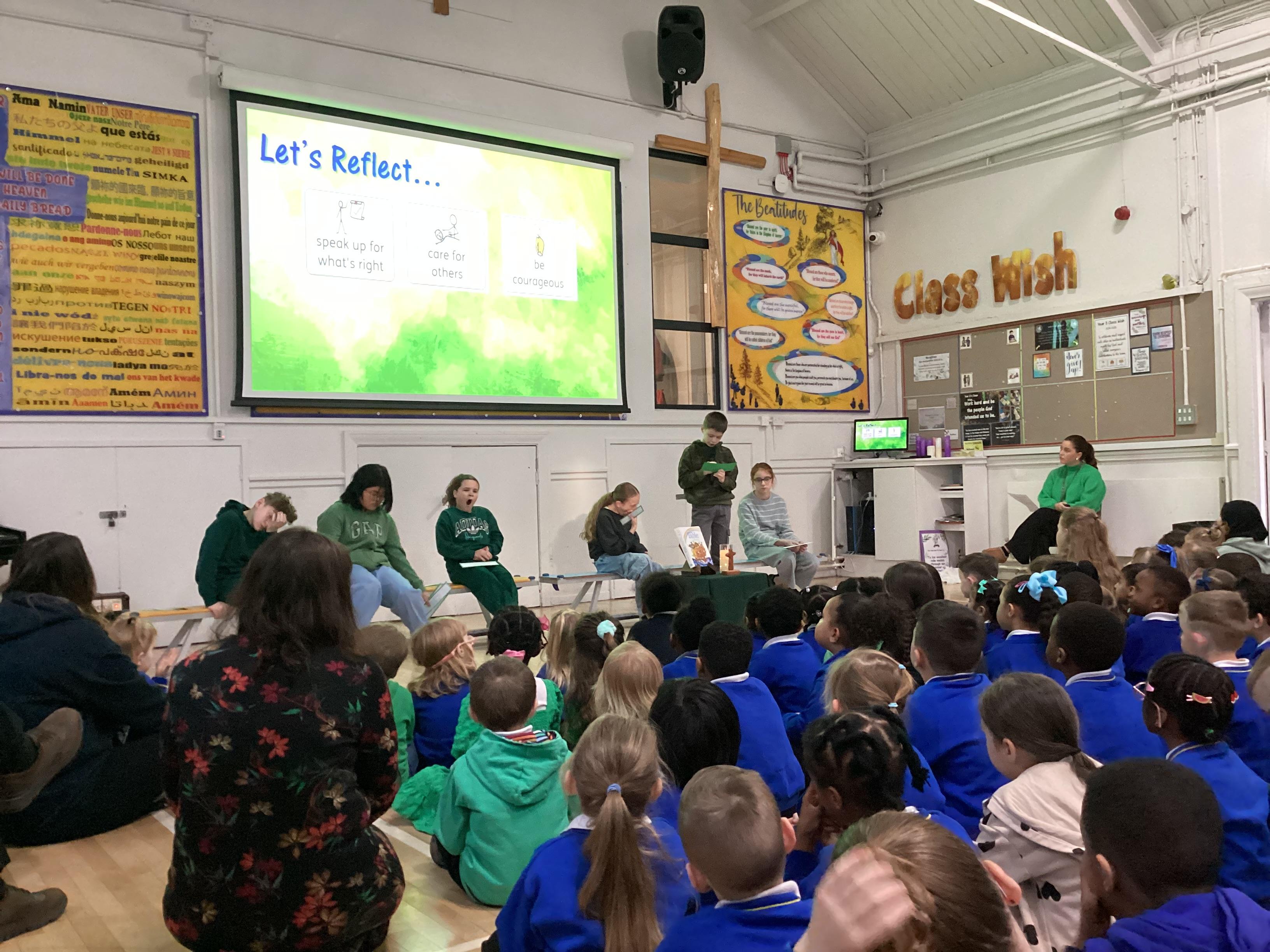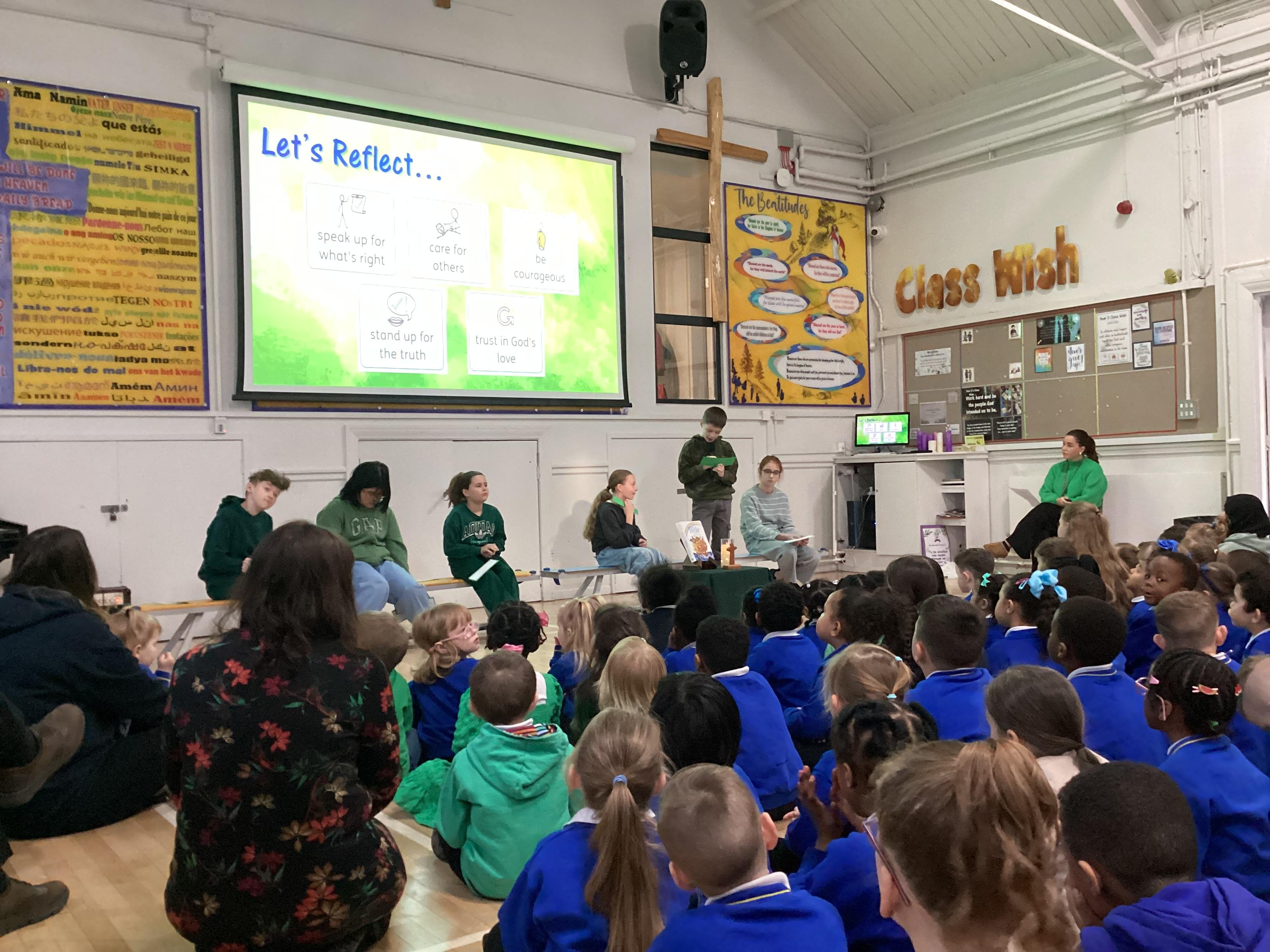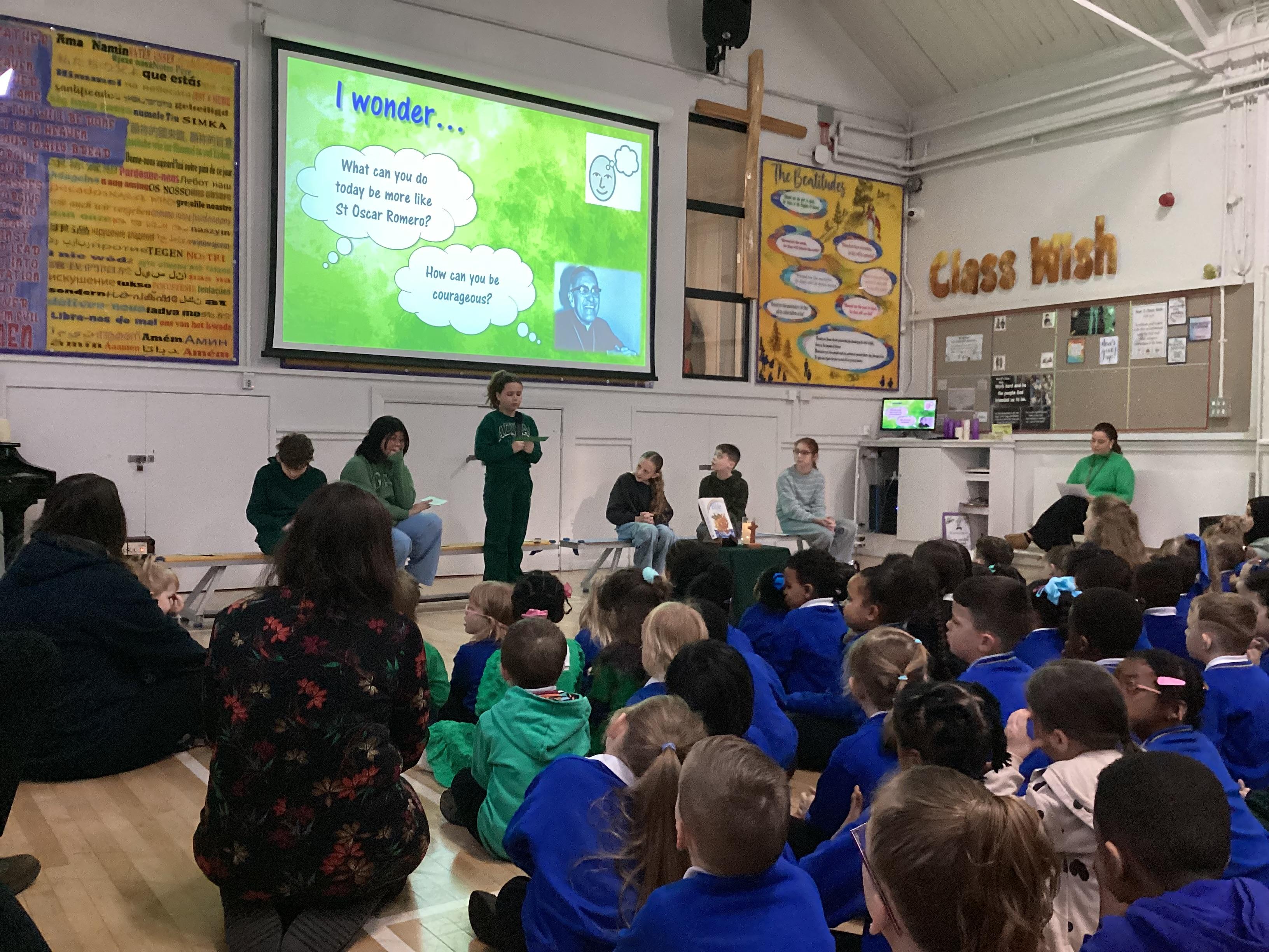 On Wednesday 5th February, the children in our team celebrated our house saint.  The children were invited to come in wearing green, to support St Oscar Romero and the children from Years 5 and 6 shared a beautiful assembly with the whole school.