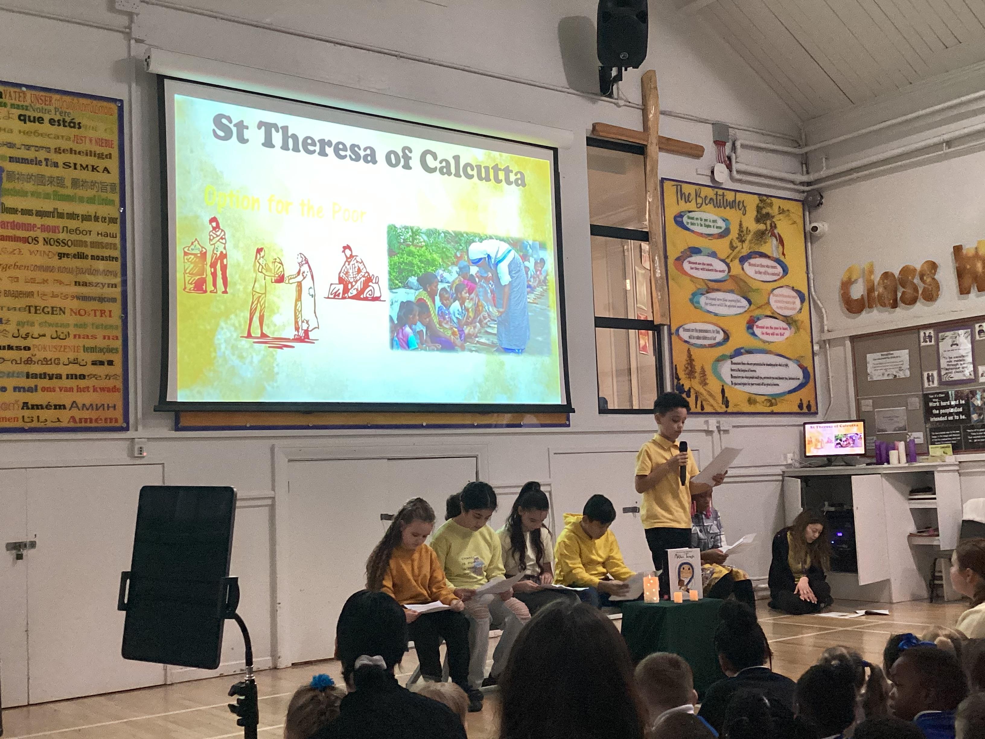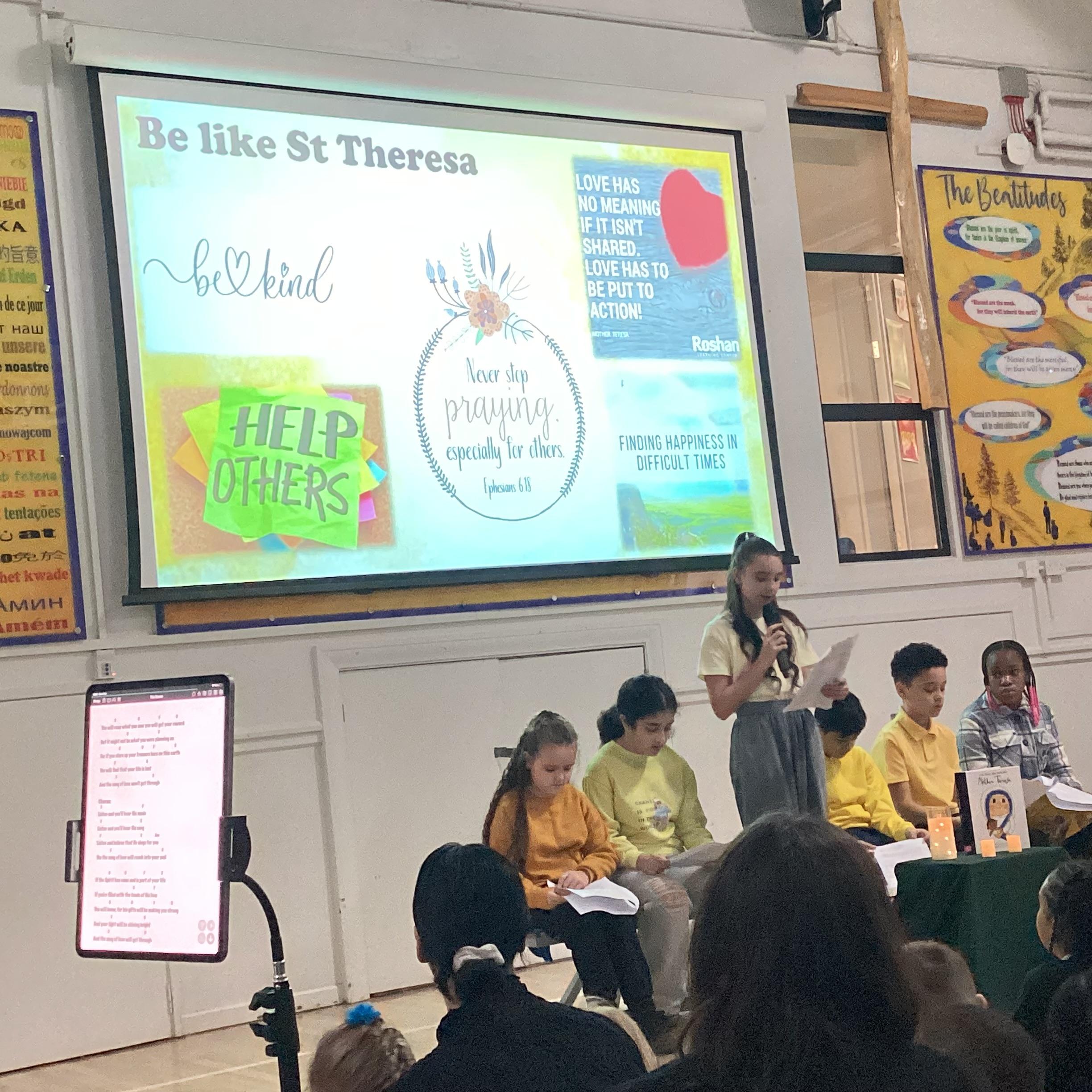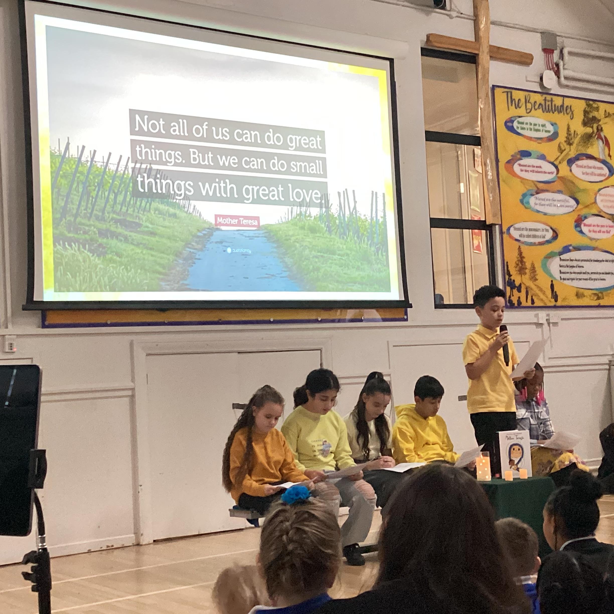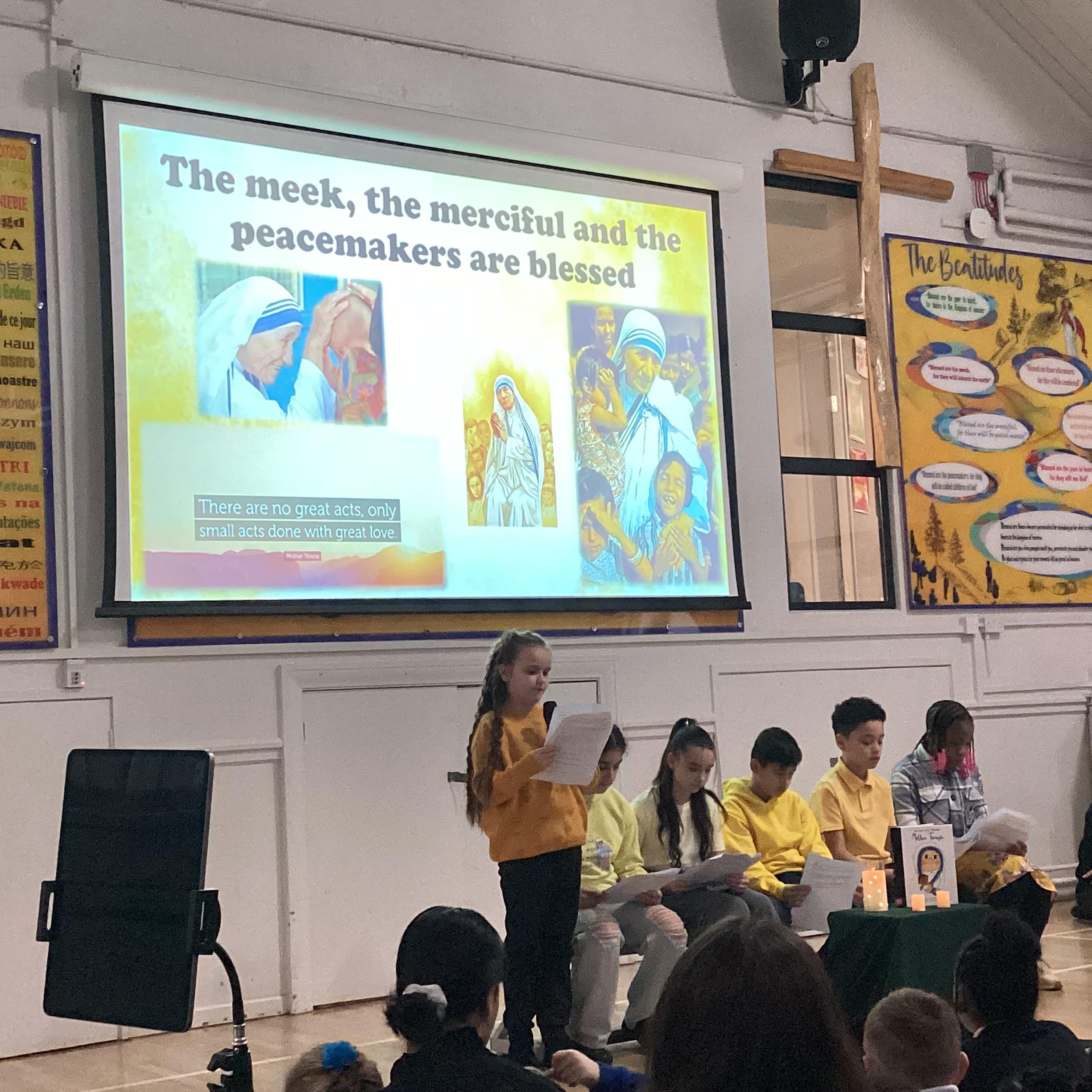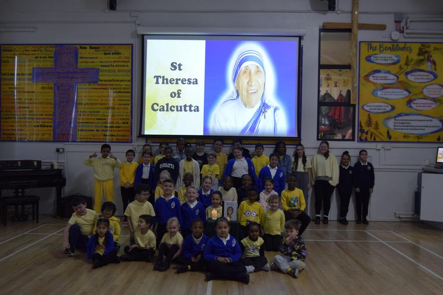 On Monday 3rd February, the children in our team celebrated our house saint. The children were invited to come in wearing yellow, to support St Teresa and the children from Years 5 and 6 shared a beautiful assembly with the whole school.