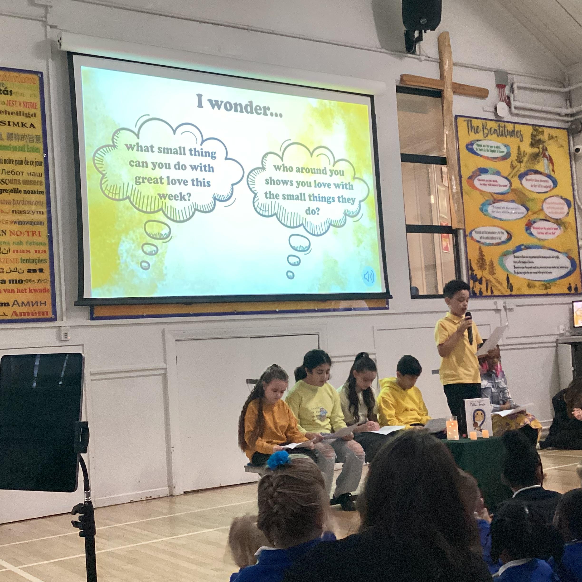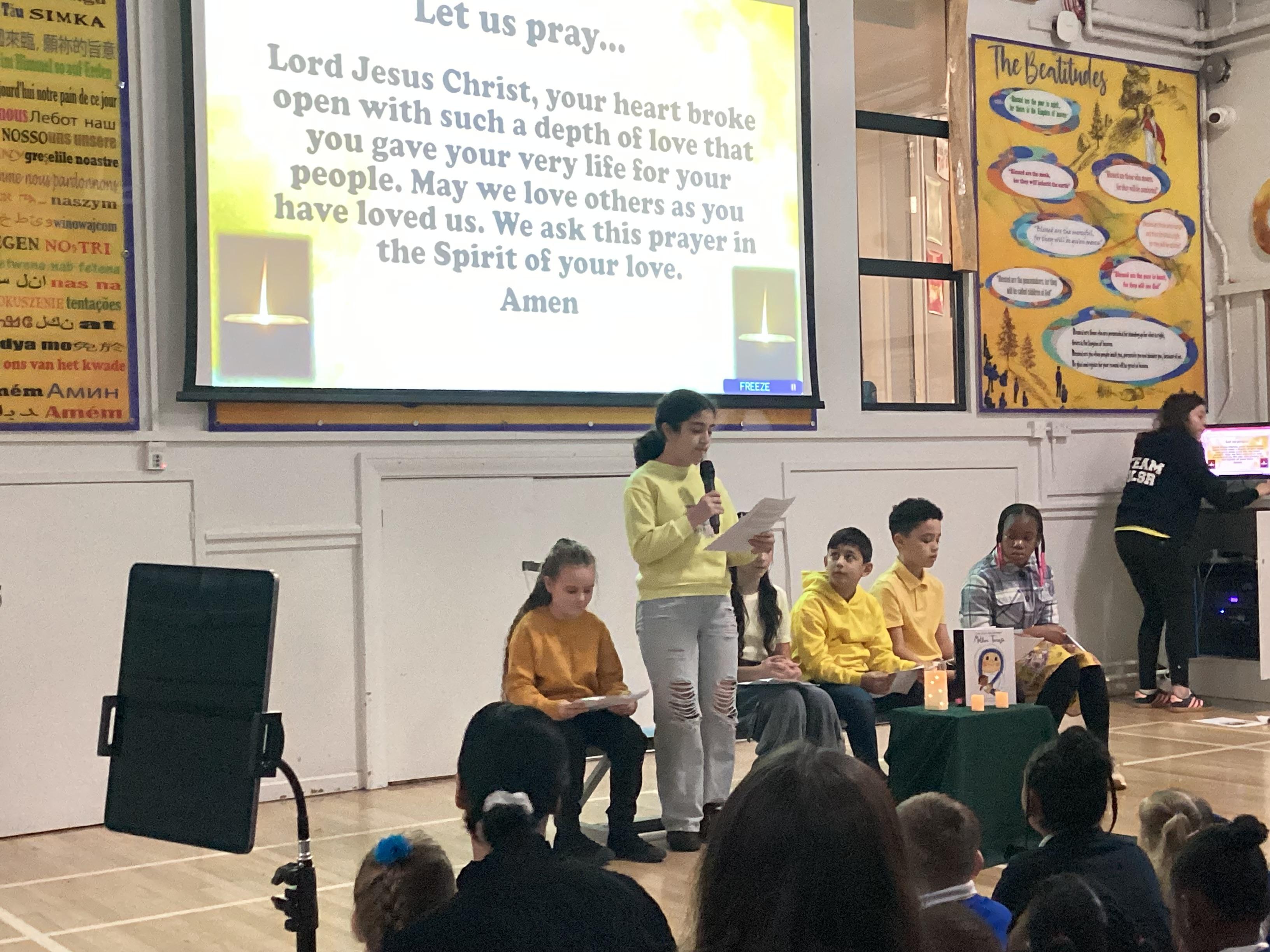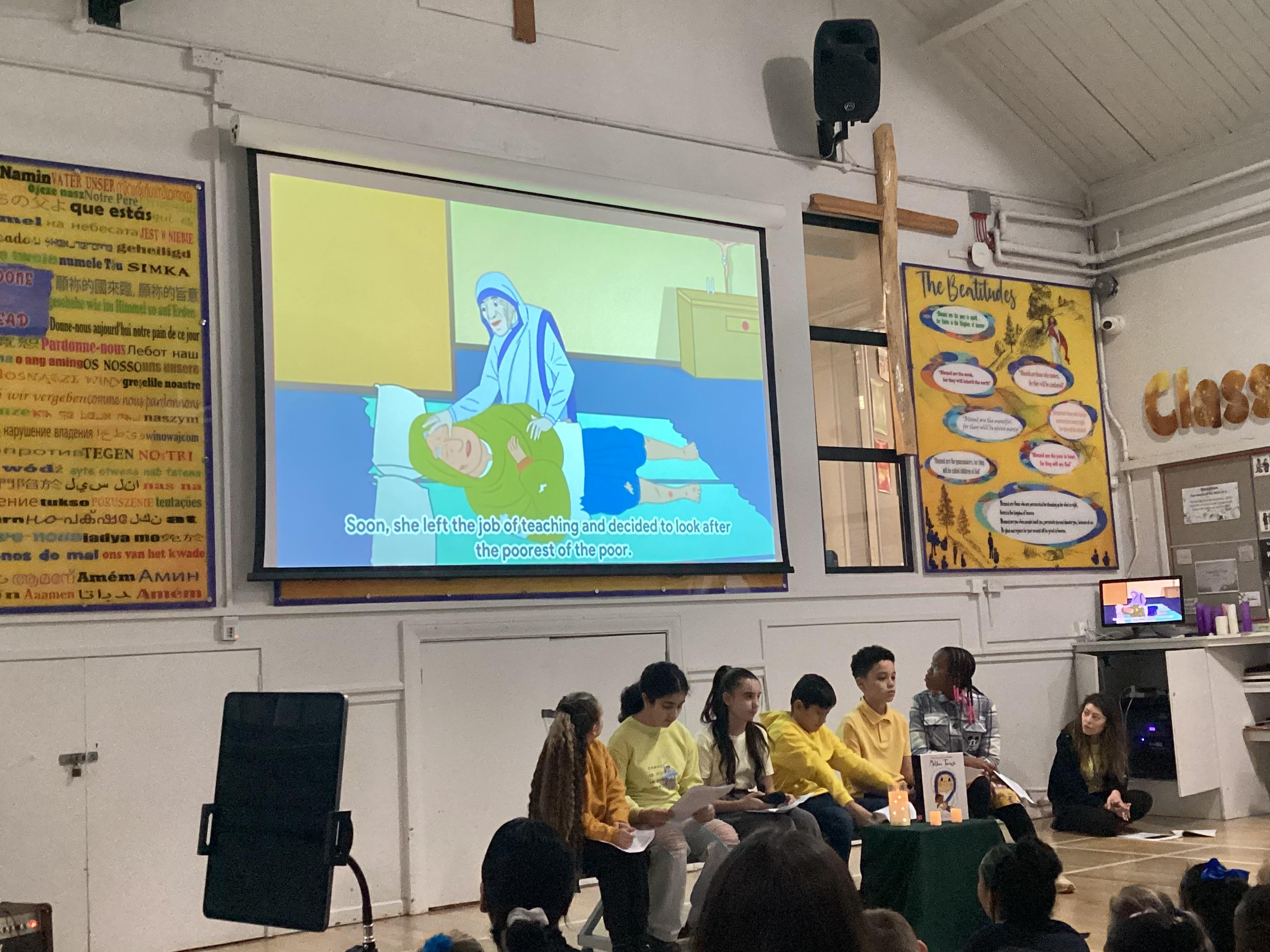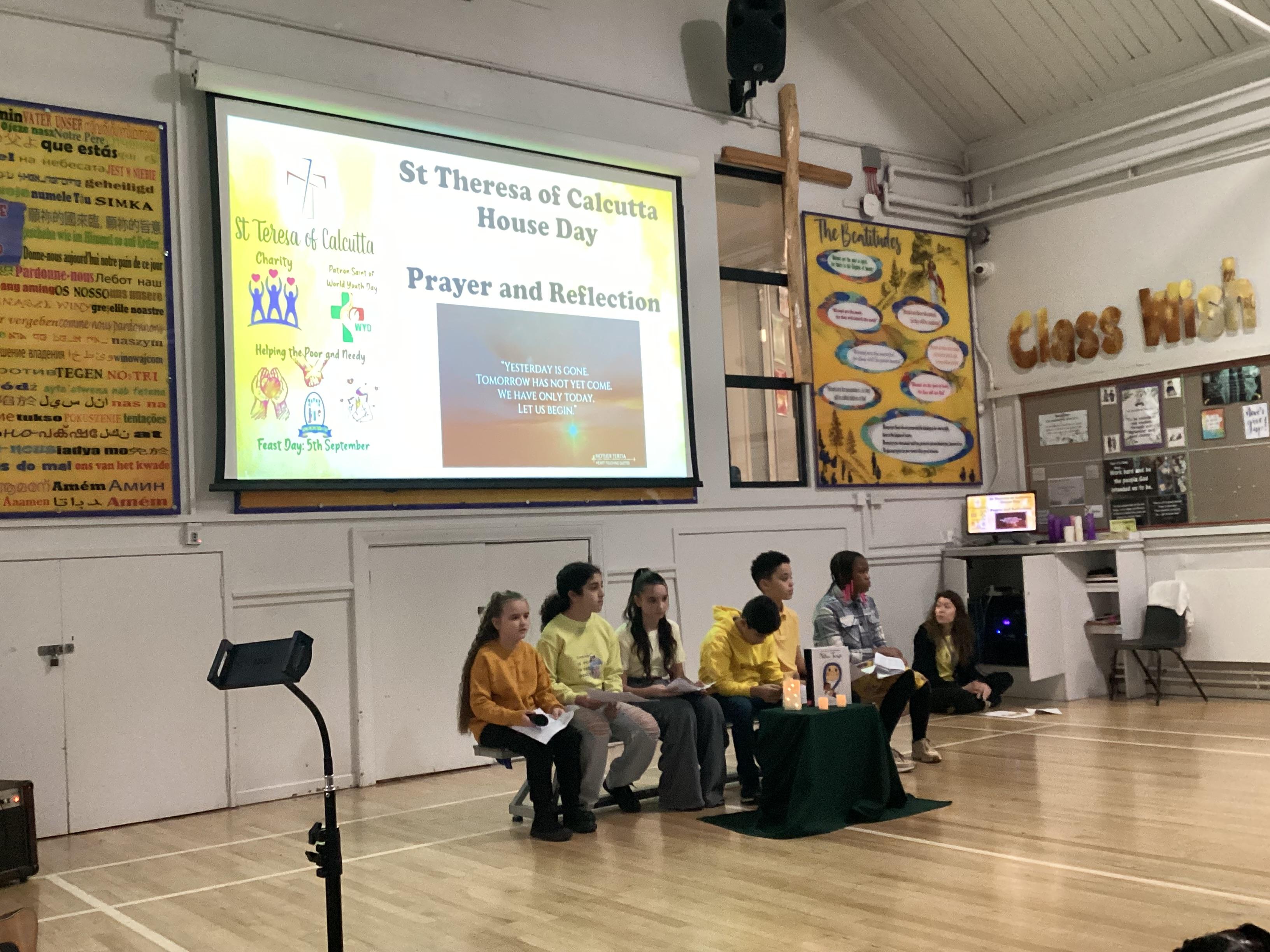 On Monday 3rd February, the children in our team celebrated our house saint. The children were invited to come in wearing yellow, to support St Teresa and the children from Years 5 and 6 shared a beautiful assembly with the whole school.