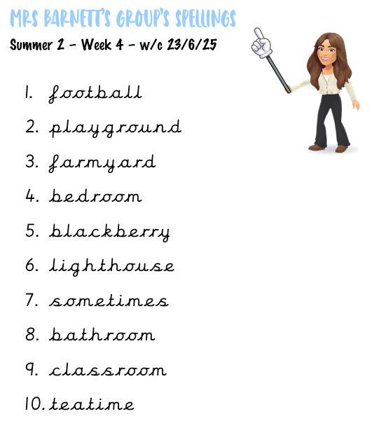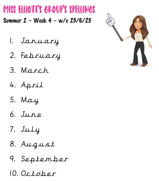 We send home the week's spellings every Friday, so you can support your child with their practice over the week. Homework books are collected each Thursday, and we then stick the new spellings in for the following week. Spelling tests are conducted every Friday, and the scores are distributed the following Monday. This routine helps reinforce learning and allows us to track progress effectively.